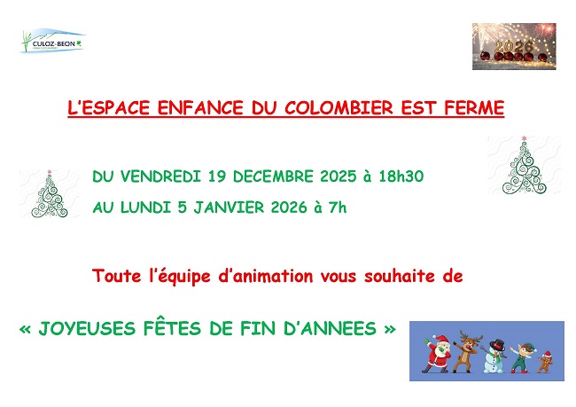 - Fermeture Espace Enfance du Colombier 19/12 au 05/01